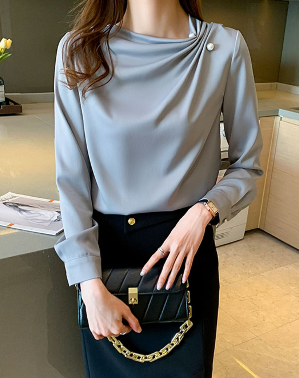 Charmosa e elegante, A BLUSA GRÉCIA COM PREGAS NA LATERAL deixará você ainda mais poderosa. Um peça clássica que nunca sai de moda, podendo ser combinada com shorts, saias, calças de alfaiataria, jeans, e inclusive calças de couro. Você vai se surpreender, aposte! A blusa possui mangas longas com botão nos punhos, pregas na lateral esquerda com pérolas, caimento reto e comprimento regular!