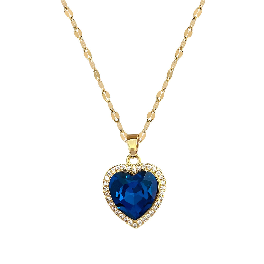 O colar coração Nivora é a escolha perfeita para quem busca elegância e brilho. Com um deslumbrante cristal azul em formato de coração, envolto por delicadas pedras, essa joia folheada a ouro combina sofisticação e charme. Ideal para qualquer ocasião, ele complementa seu estilo com um toque especial.