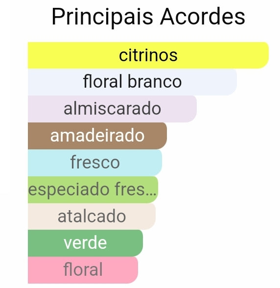 | Composição | toranja, laranja, jasmim, almíscar branco, âmbar, madeira de sândalo, cumaru |
