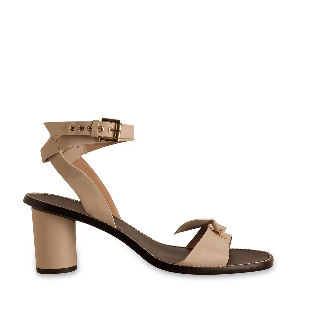 - Sandália alta feminina confeccionada em couro no tom off white