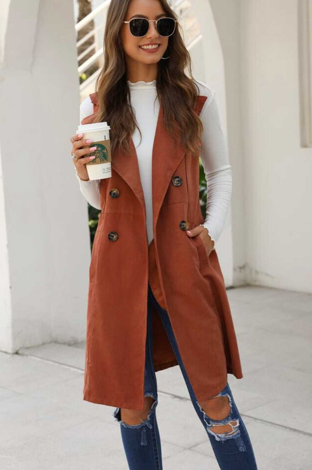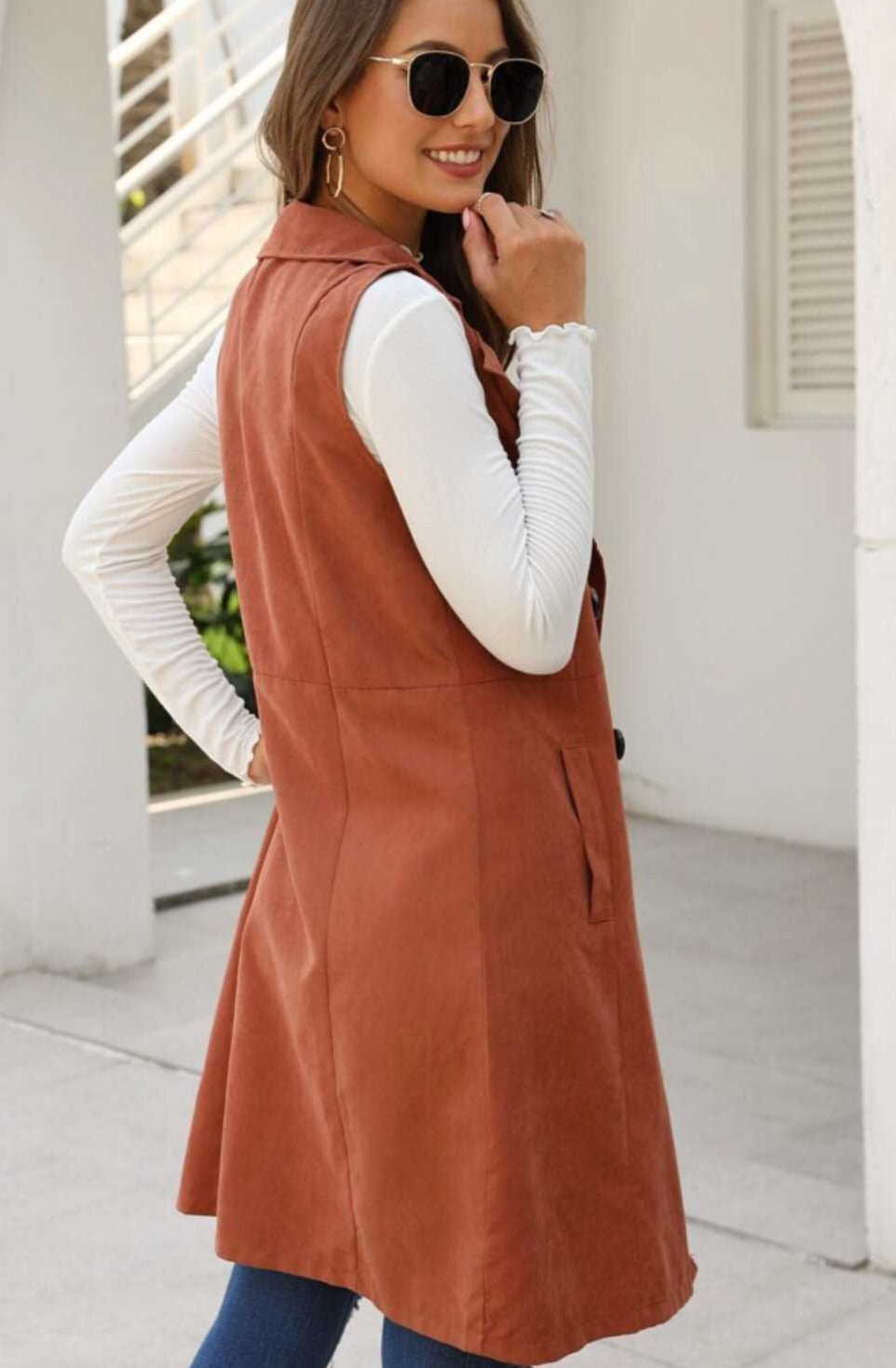 A peça que é aquele clássico com um toque diferenciado. Ideal para um look de trabalho ou então para algo mais despojado. Sem mangas, comprimento alongado tipo vestido e forro.