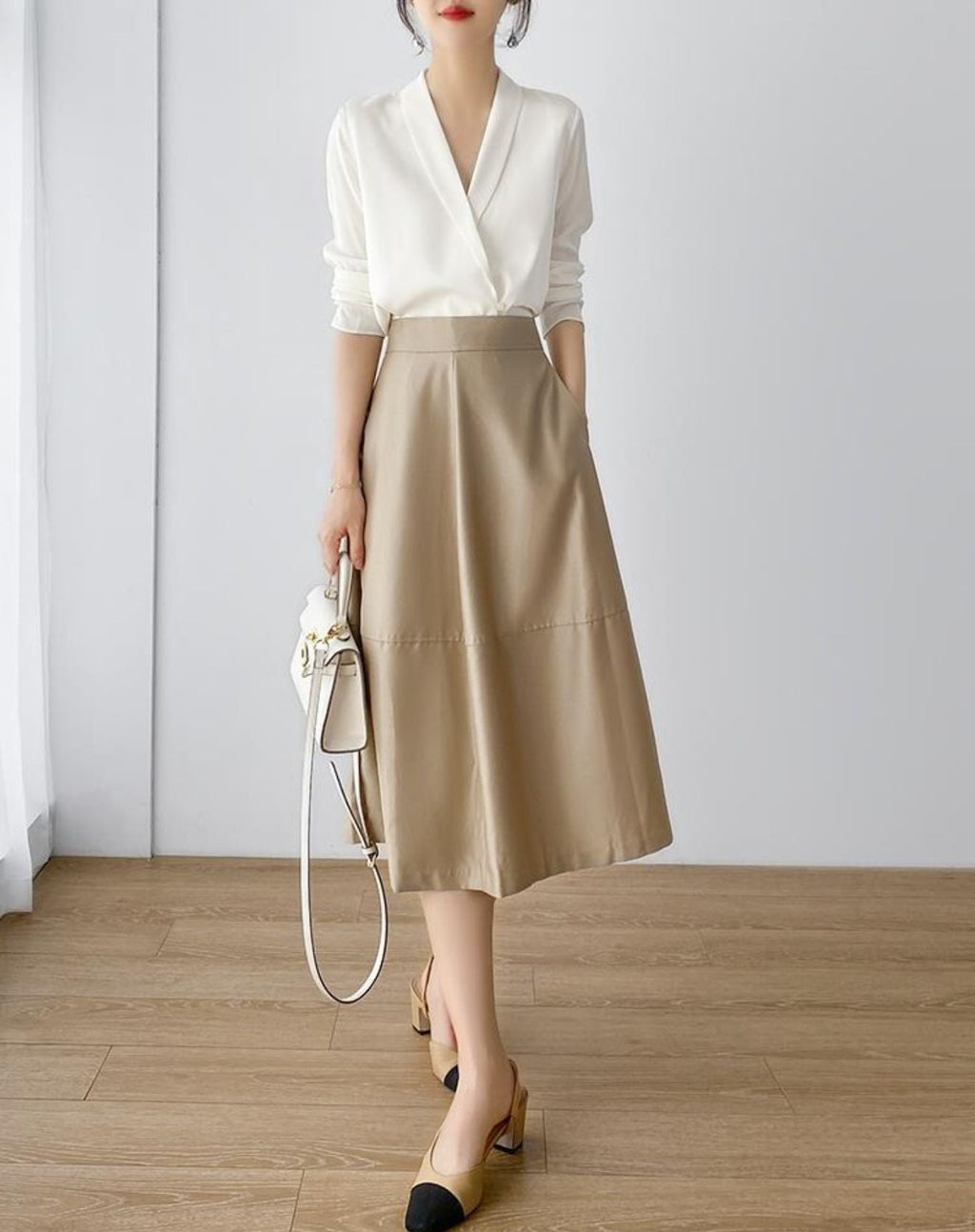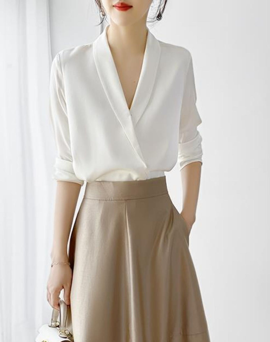 Chegou para ser a peça mais versátil do seu closet. A BLUSA CAMBERRA DECOTE V é linda e apaixonante, podendo ser usada em qualquer proposta de look, podendo ajustar as mangas da forma que você preferir e que lhe convém. Arrase! Possui mangas longas, decote V transpassado, botão único para fechamento lateral, caimento reto e regular.
