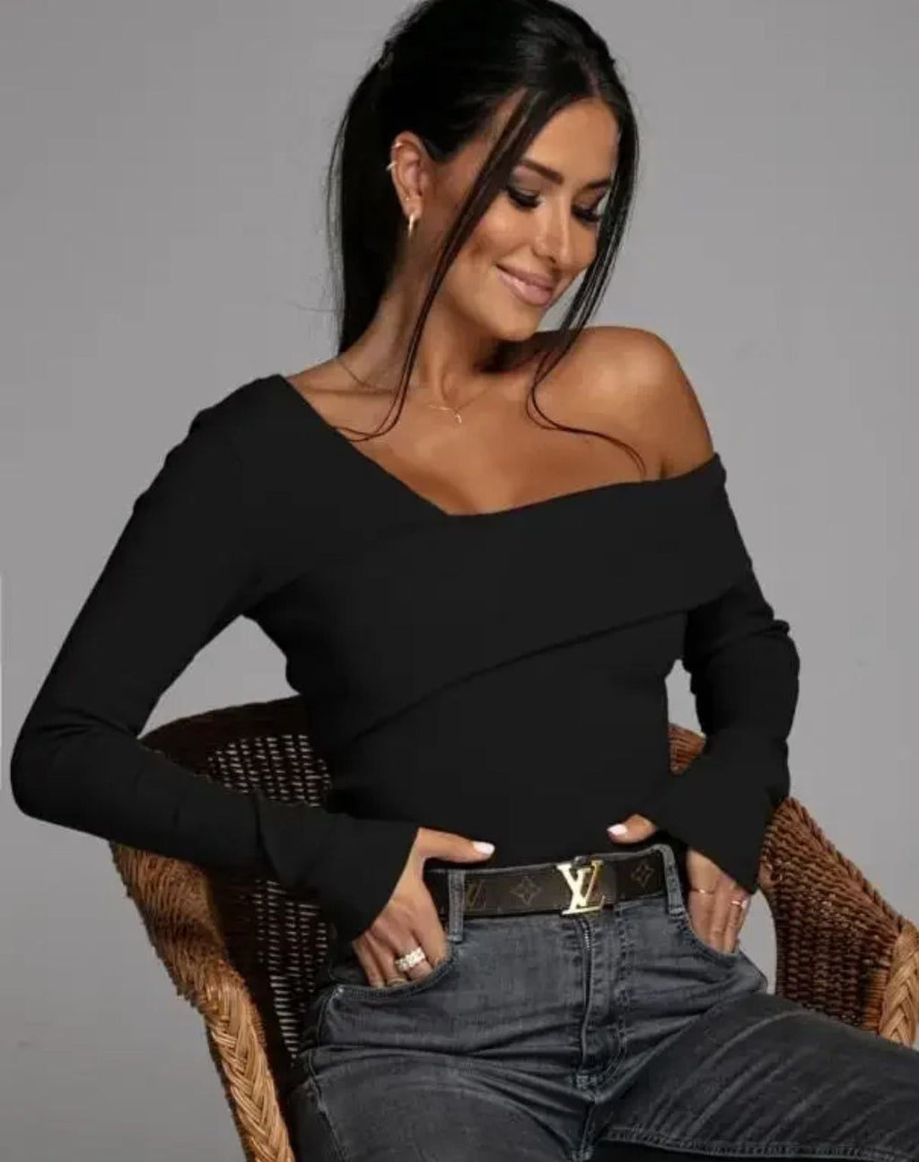 Essa é a peça que você estava procurando. A BLUSA EURO COM UM OMBRO DE FORA E MANGAS LONGAS possui um toque sexy mas sutil que será o destaque nos seus encontros com os amigos ou festinhas, sendo composta por mangas longas, corte fora em um ombro, detalhe transversal e justa ao corpo. Você vai amar!