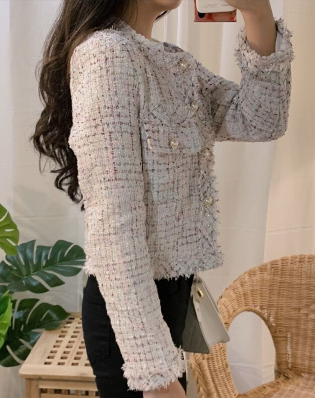 Casaco Star Tweed com Mangas Longas e Botões