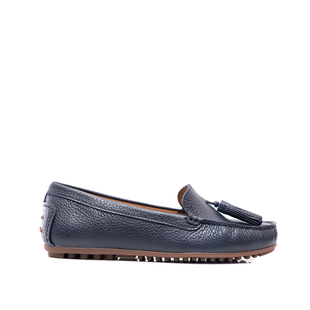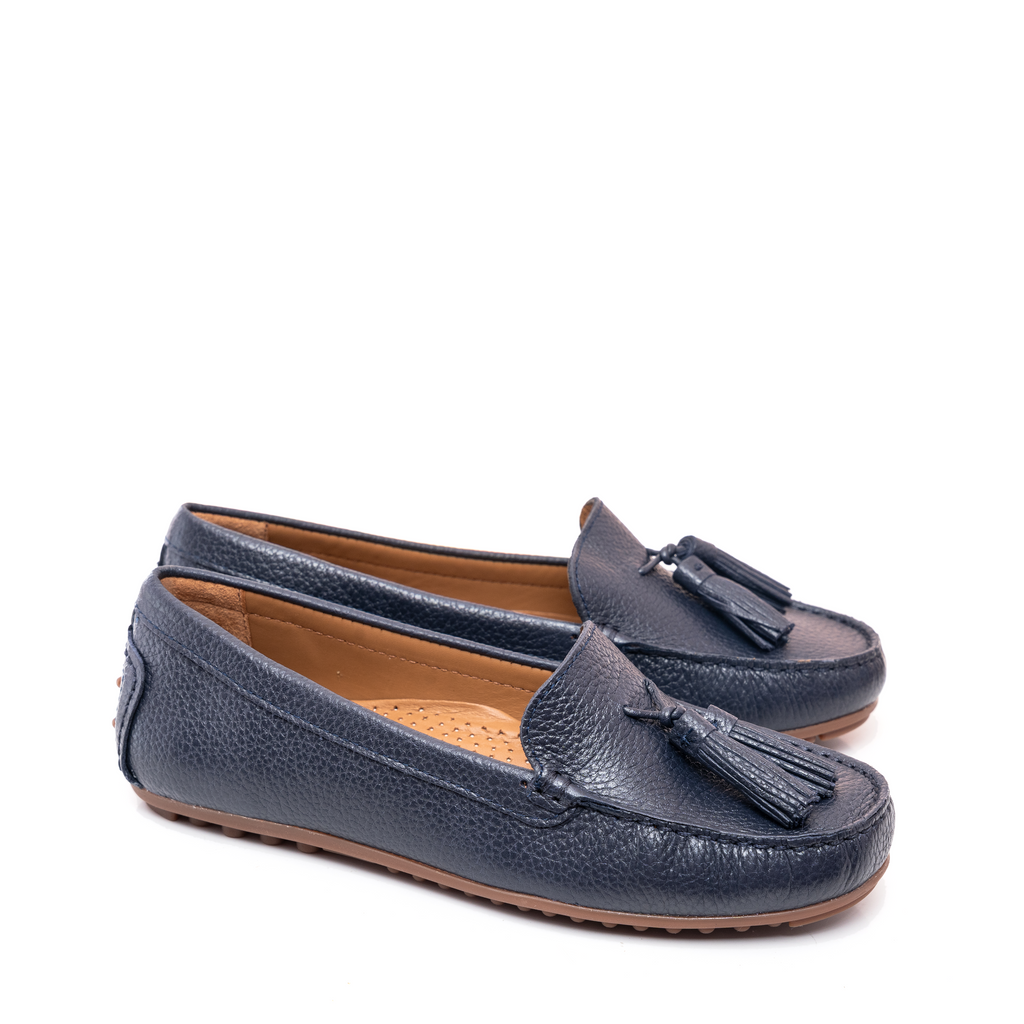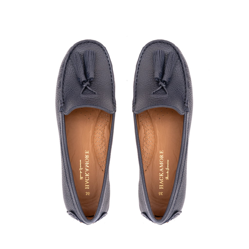 - Mocassim confeccionado em couro floater no tom marinho utilizando processo artesanal diferenciado