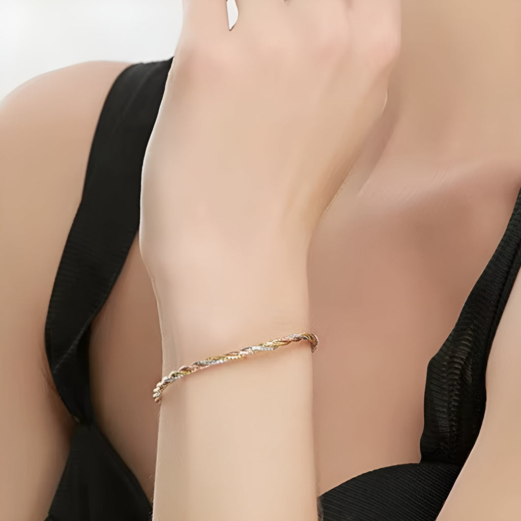 Pulseira Feminina de Ouro e Prata Trançada Elegance