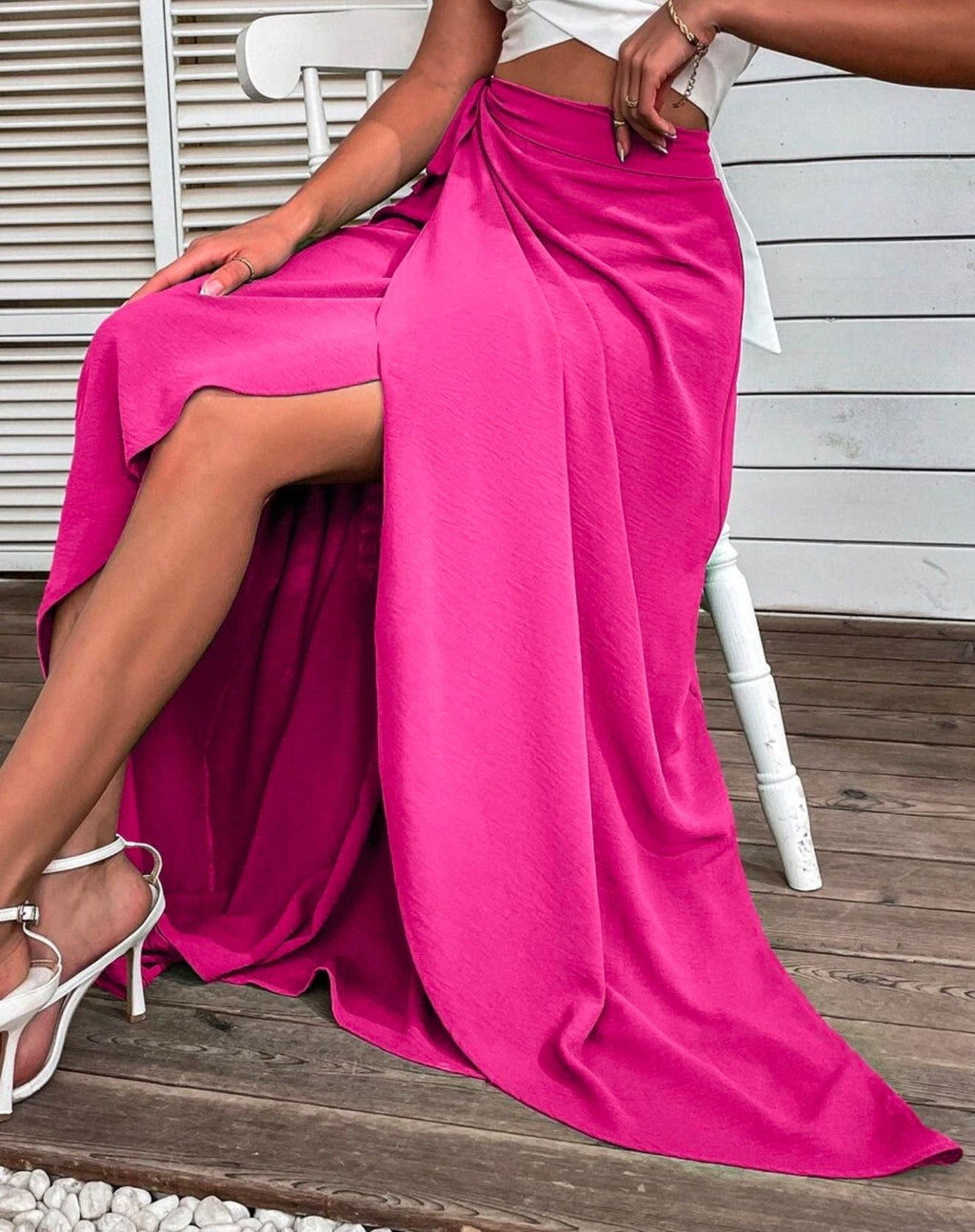 Desejando a saia perfeita? Acabou de achar, a SAIA MAXI COM CINTURA TRANSPASSADA é incrivelmente linda para várias ocasiões importantes, seja no trabalho, em passeios diurnos ou saídas noturnas. Abuse da sua criatividade ao montar o seu look com essa peça elegante e se apaixone. Possui transpasse na cintura, possibilitando uma amarração, comprimento longo, fenda lateral e tecido fluído.