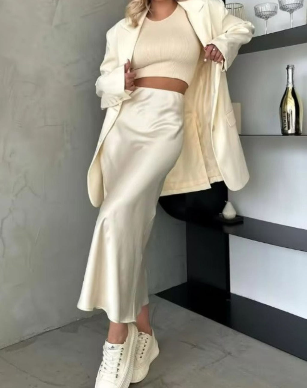 A SAIA MIDI LUNNA DE SEDA é aquela peça que vai deixar você elegante em todas as ocasiões! A saia é super versátil, podendo ser usada em eventos especiais tanto ao dia como a noite, combinando com tênis, sapatilhas, scarpins e até rasteiras. Você vai amar! A saia possui comprimento reto e alongado, justa na cintura composta por zíper traseiro.